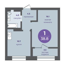 1-комнатная квартира на 2 этаже в 15-этажной секции прогресс-кварталов "Перемены".