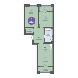 3-комнатная квартира на 14 этаже в 15-этажной секции прогресс-кварталов "Перемены".