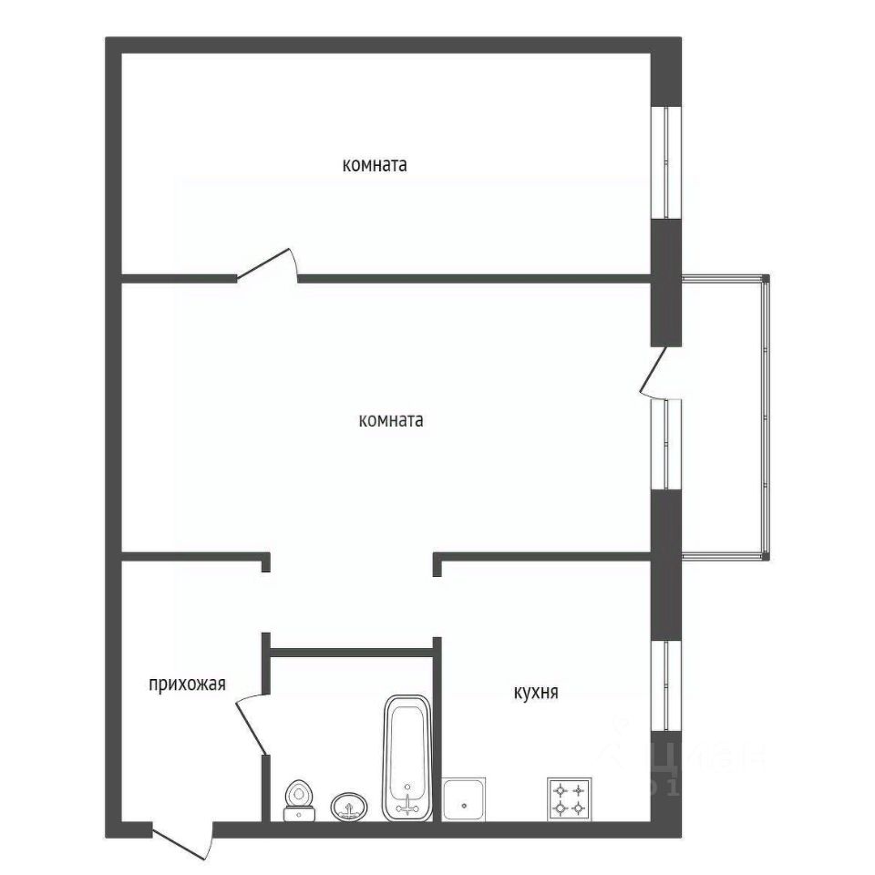 Общая площадь 45 кв.м, окна ПВХ,санузел совмещённый.