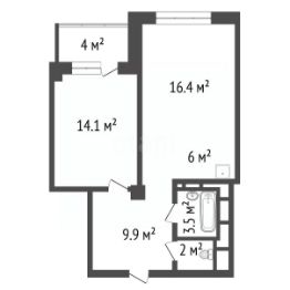 Общая площадь 51,9 кв.м. Планировка подойдет для тех кто любит пространство: большая кухня-гостиная 20,4 кв.м., широкая комната 14,1 кв.м. с выходом на лоджию, раздельный санузел, квадратный коридор с возможностью организовать гардеробную.