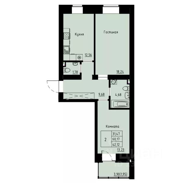 Продаётся 2-комнатная квартира в сданном доме (Елены Стасовой, 82 (Дом 4 (подъезды 1-3))), срок сдачи: III-кв. 2025, общей площадью 62.4 кв.м., на 2 этаже. Новый жилой комплекс "Хвоя" от Строительной компании "Омега" расположен в Октябрьском районе Красноярска на ул. Елены Стасовой.