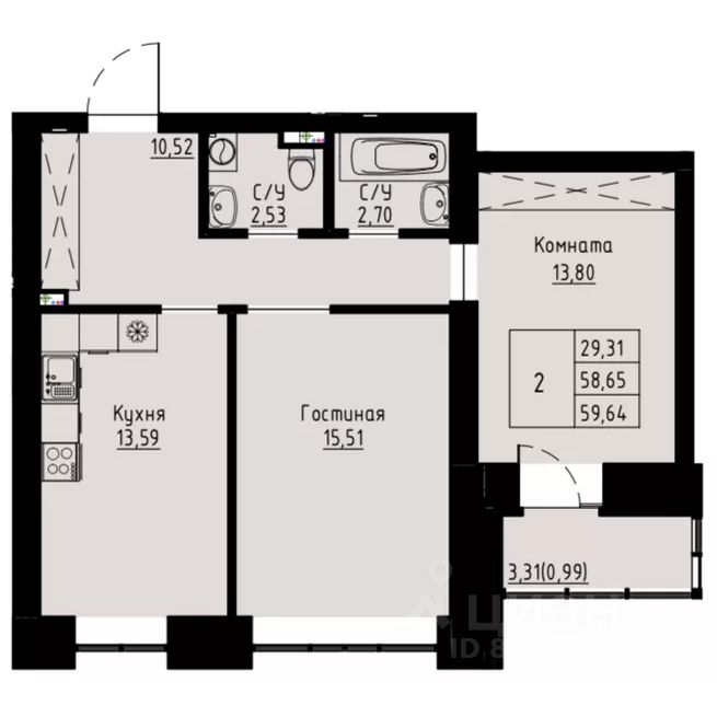 Продаётся 2-комнатная квартира в сданном доме (Елены Стасовой, 82 (Дом 4 (подъезды 1-3))), срок сдачи: III-кв. 2025, общей площадью 60.6 кв.м., на 7 этаже. Новый жилой комплекс "Хвоя" от Строительной компании "Омега" расположен в Октябрьском районе Красноярска на ул. Елены Стасовой.