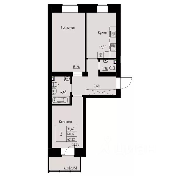 Продаётся 2-комнатная квартира в сданном доме (Елены Стасовой, 82 (Дом 4 (подъезды 1-3))), срок сдачи: III-кв. 2025, общей площадью 62.1 кв.м., на 4 этаже. Новый жилой комплекс "Хвоя" от Строительной компании "Омега" расположен в Октябрьском районе Красноярска на ул. Елены Стасовой.