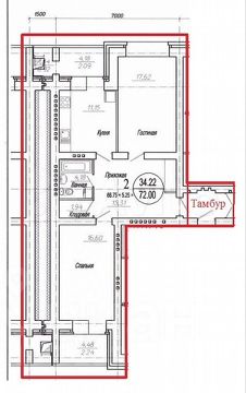 Просторная 2-х комнатная квартира, не угловая, с большой кухней и коридором 15 м2, где удачно разместятся шкафы и огромная прихожая. Сан узел совмещен (площадь позволяет разделить ванную с туалетом), кроме того, рядом кладовая (или гардеробная), если есть желание, можно из кладовки сделать второй туалет или установить большую ванную с джакузи, сауну или реализовать другие свои варианты. Окна и лоджии 4,5 м2 и 6 м2 выходят на две стороны. Жилую площадь можно увеличивать за счет утепления лоджий, хотя площадь комнат итак 16,5 и 17,5 м2. Плюс есть тамбур на две квартиры - можно использовать для колясок/велосипедов и т.д.