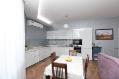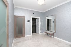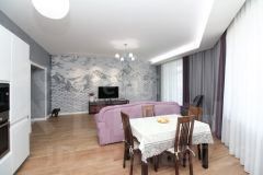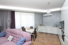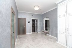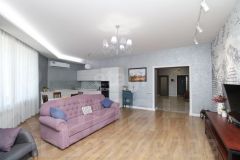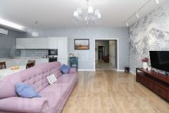 Ключевое преимущество — продуманная планировка с кухней-гостиной 38 кв. м, идеально подходящей для семейных обедов и приема гостей. В квартире два санузла: совмещенный с душевой кабиной, ванной и местом под стиральную машину, а также отдельный туалет для удобства. Дополнительные удобства включают большую кладовую и лоджию, где можно устроить зону отдыха. Дизайнерский ремонт выполнен с учетом современных тенденций, частично остается мебель.