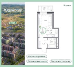 1-комнатная квартира, 27.17кв.м., 6 этаж