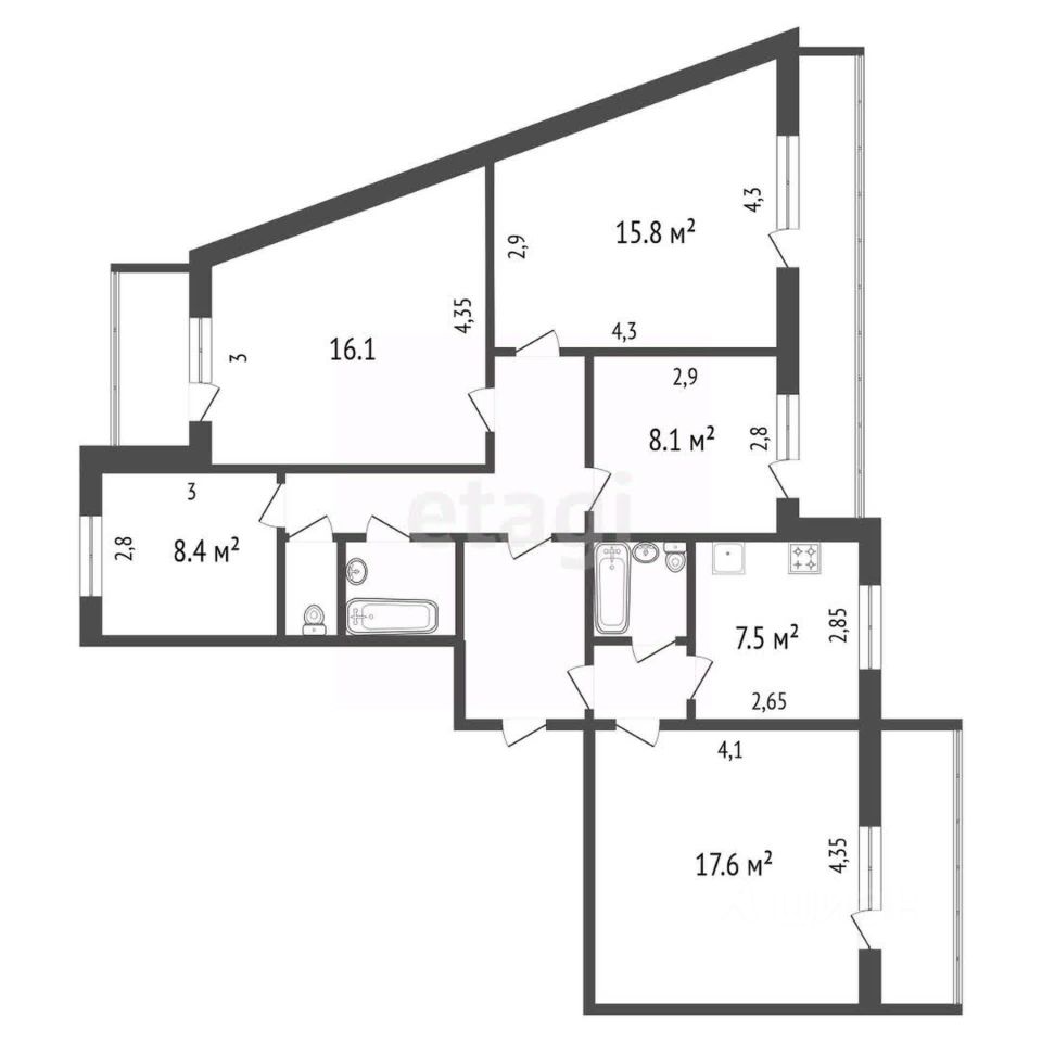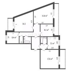 3 просторные комнаты + кухня