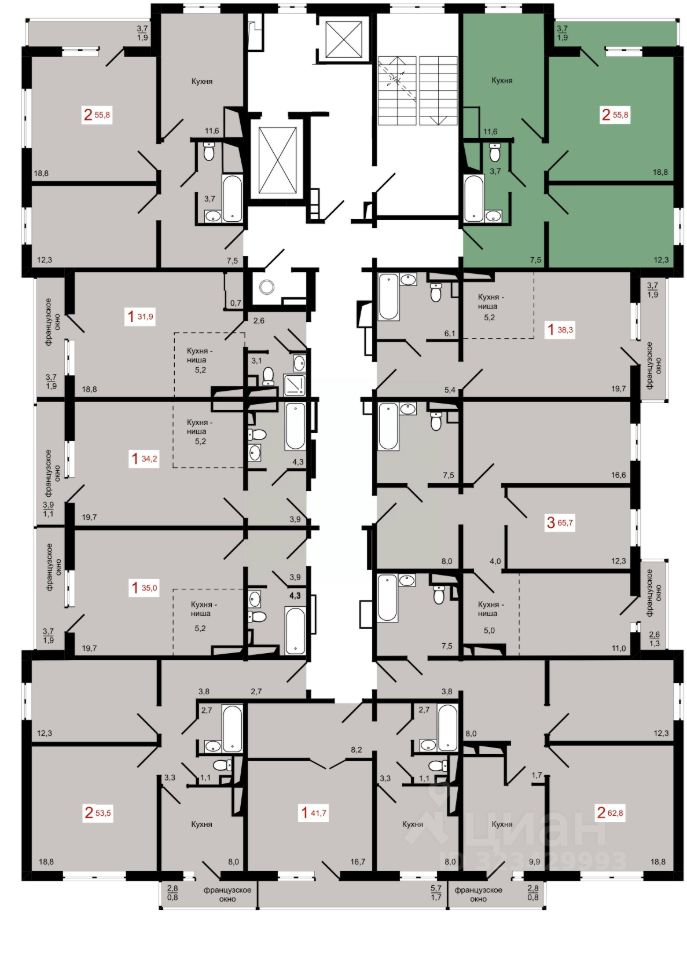 Продаётся 2-комнатная квартира в строящемся доме (Дом 7 строение 1), срок сдачи: IV-кв. 2027, общей площадью 55.8 кв.м., на 17 этаже.