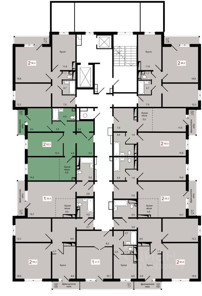 Продаётся 2-комнатная квартира в строящемся доме (Дом 7 строение 2), срок сдачи: IV-кв. 2027, общей площадью 58.3 кв.м., на 2 этаже.