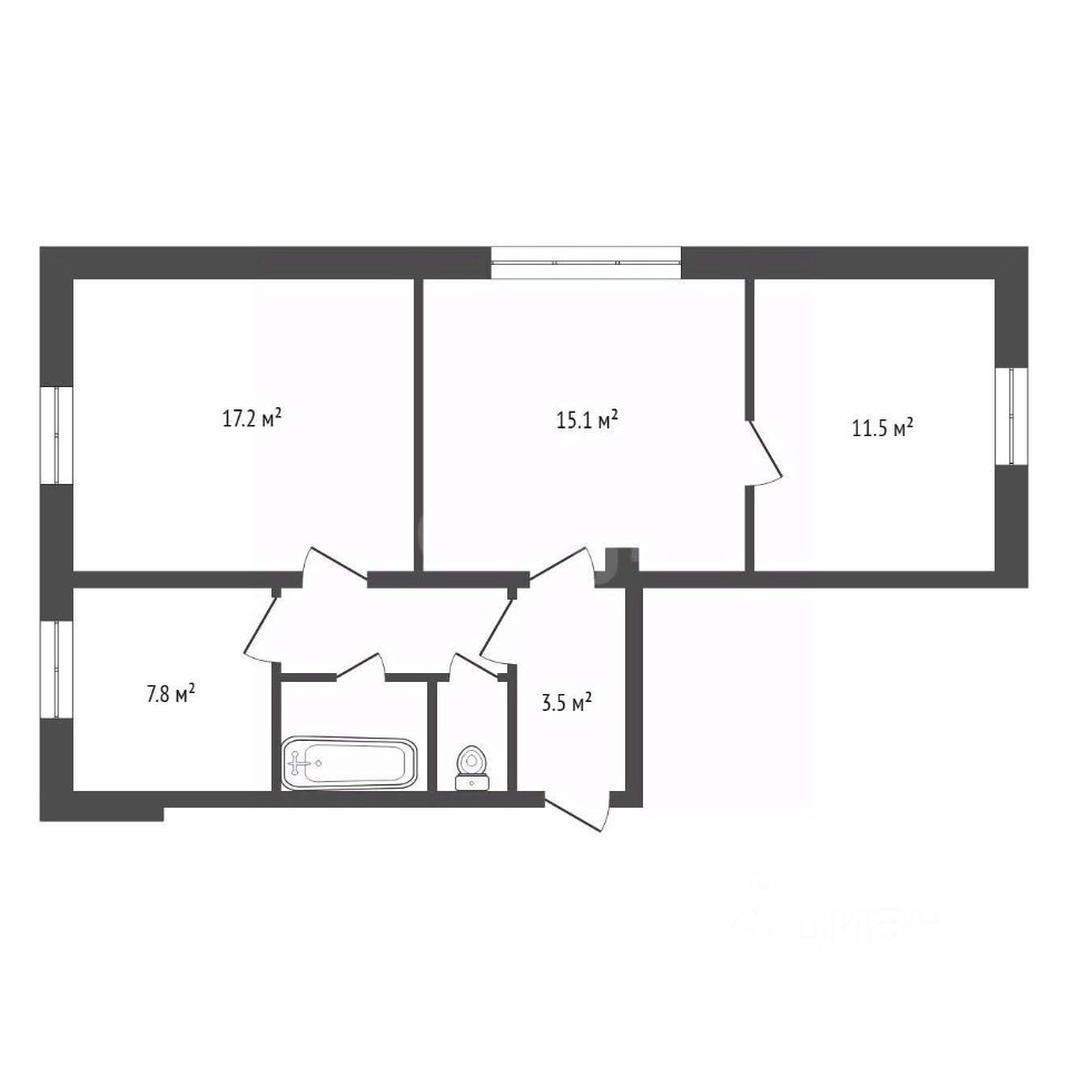 Комнаты имеют самостоятельные входы из коридора (нет "проходных" комнат) — хорошая приватность.