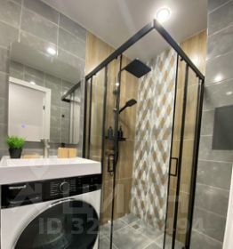 Сан узел выложен кафелем, зеркало с подсветкой, стиральная машинка автомат. Установлена душевая кабина.