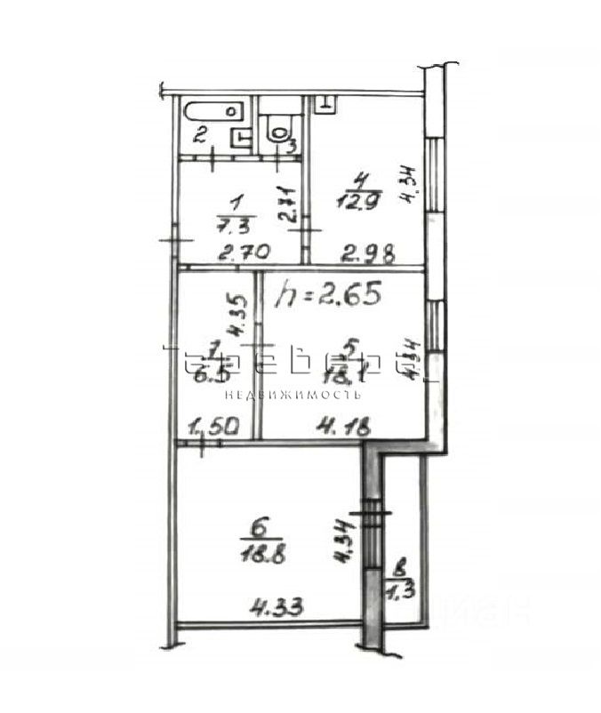 Квартира с удобной планировкой, большая кухня 13 м2, две комнаты 18 м2 и 19 м2, и два коридора. Квартира требует косметического ремонта. Санузел раздельный, в кафеле.