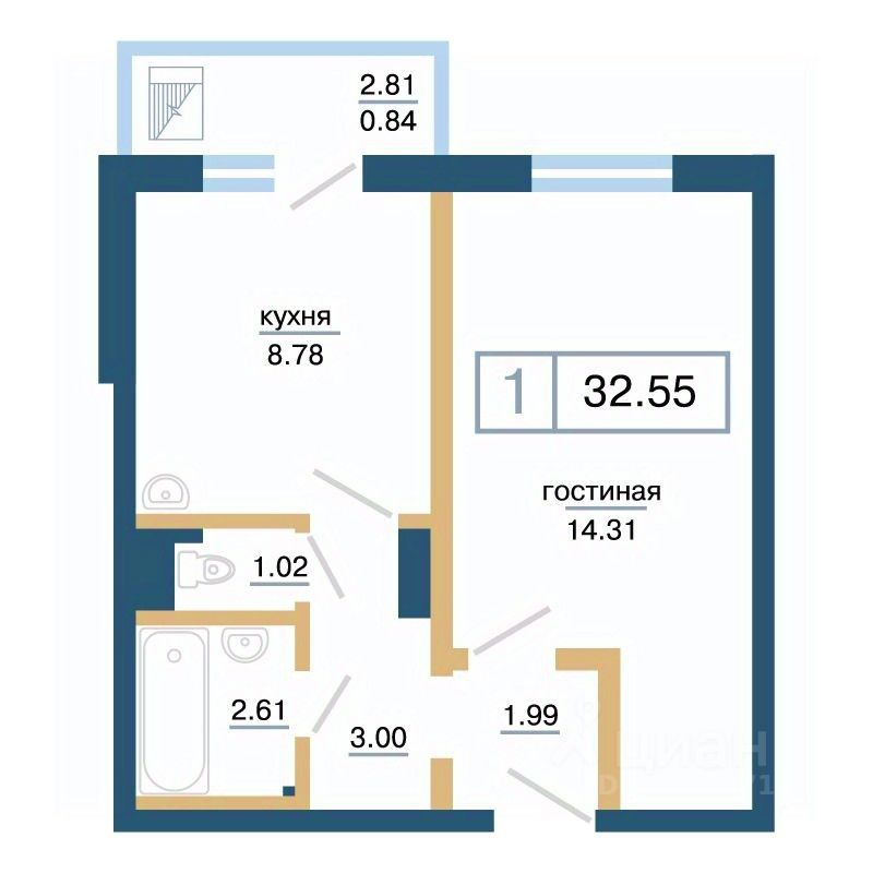Продаётся 1-комнатная квартира в строящемся доме (Дом 11), срок сдачи: IV-кв. 2026, общей площадью 32.55 кв.м., на 14 этаже. Расположение, транспортная доступность