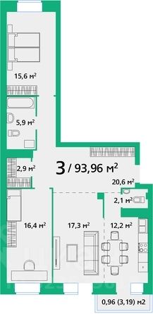 93,96 м²