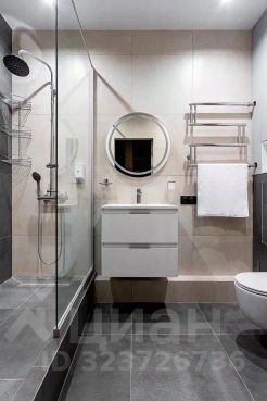 Санузел в керамограните. Установлена инсталляция, тропический душ, удобный полотенцесушитель. Всё качественно и современно.