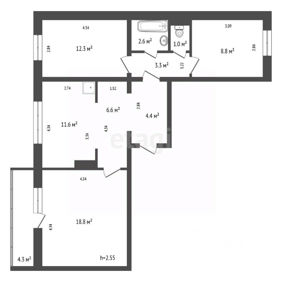 Продается полноценная 3 комнатная квартира с большой кухней студией.