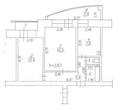 - площадь 46,1 кв.м. без учёта лоджии 1,5 кв.м и балкона 2 кв.м.
