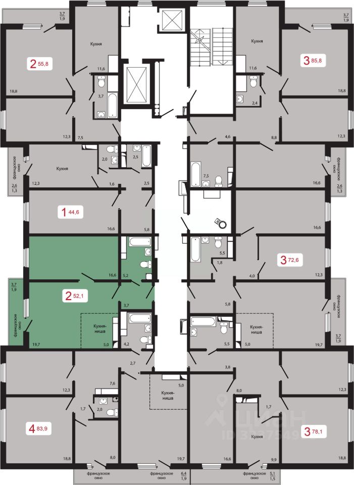 Продаётся 2-комнатная квартира в строящемся доме (Дом 3 строение 1), срок сдачи: II-кв. 2026, общей площадью 52.1 кв.м., на 16 этаже.
