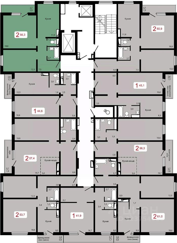 56,3 м²