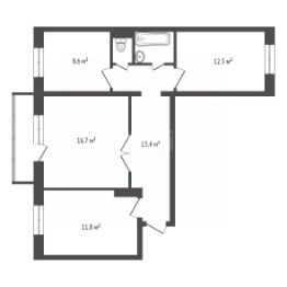 Просторная трехкомнатная квартира площадью 69 кв. м расположена на 5 этаже 10-этажного дома в микрорайоне Солнечный.