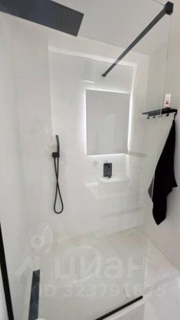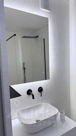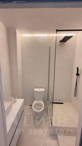 Ванная: Выполнена в Балийском стиле : душевая, унитаз и раковина на тумбе. Диодное освещение.