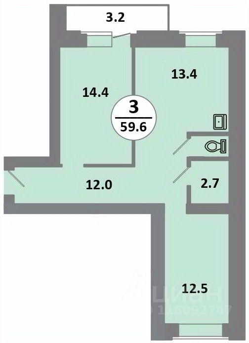 13,4 м²