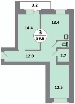 59,6 м²