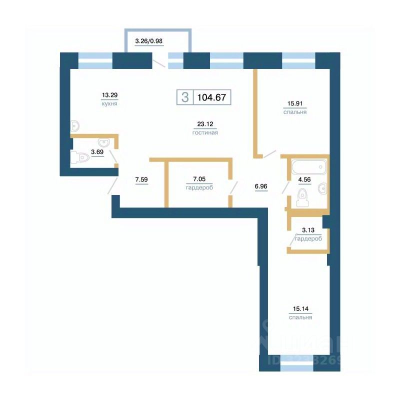 Общая площадь104,67 м²