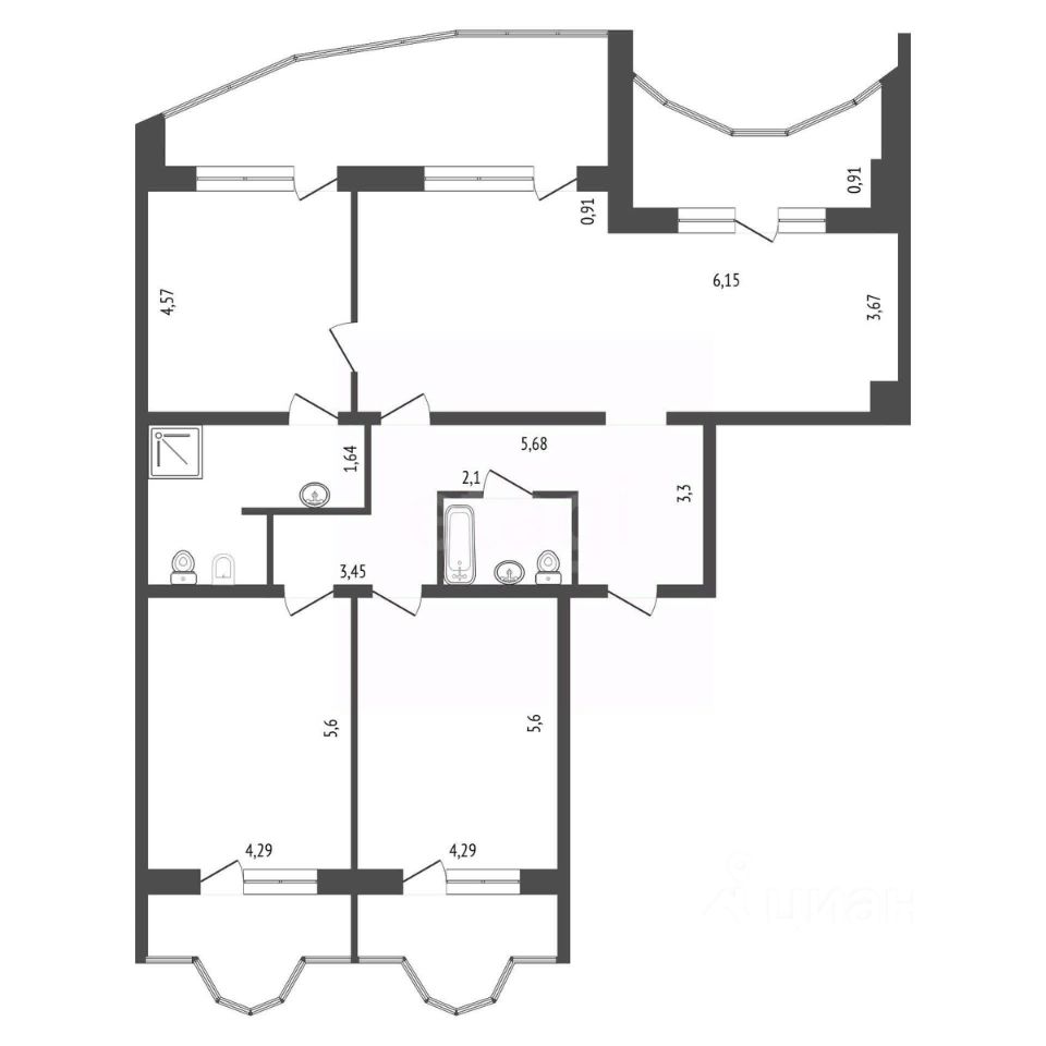 Жилая площадь 149,6 м² грамотно организована и включает большую лоджию, 2 санузла и кухня 20 м² отвечает потребностям большой семьи.