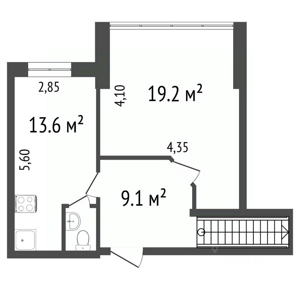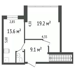 Квартира в 2-х уровневая (лестница вверх).