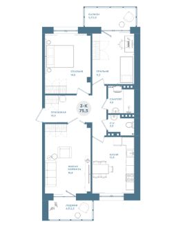 Продаётся 3-комнатная квартира в сданном доме (Дом 1-1), срок сдачи: III-кв. 2025, общей площадью 75.4 кв.м., на 14 этаже.