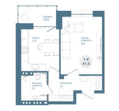 Продаётся 1-комнатная квартира в сданном доме (Дом 1-1), срок сдачи: III-кв. 2025, общей площадью 41.4 кв.м., на 15 этаже.