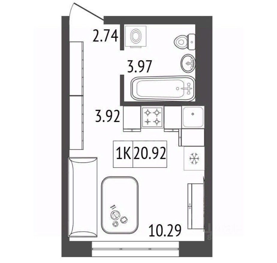 Общая площадь20,92 м²