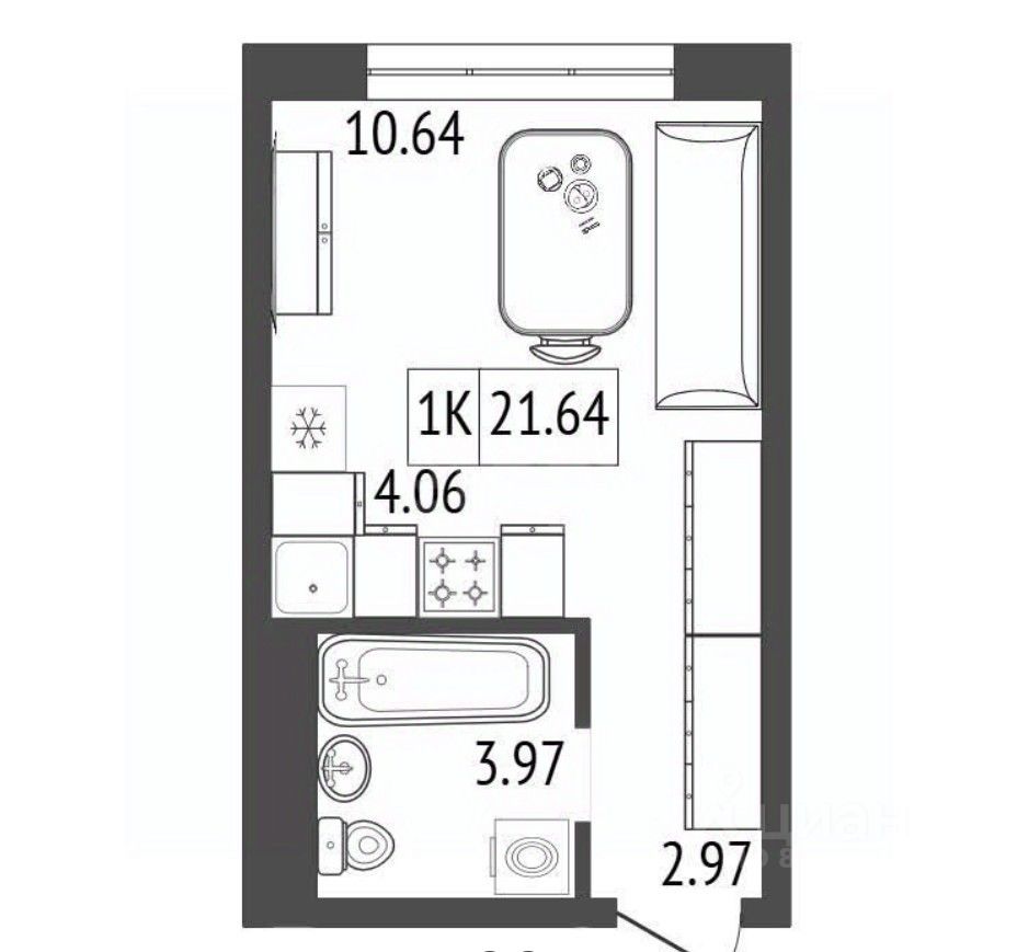 Общая площадь21,64 м²