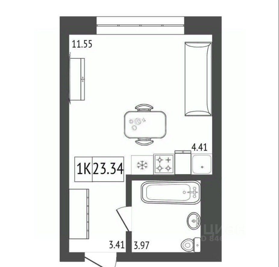 Общая площадь23,34 м²