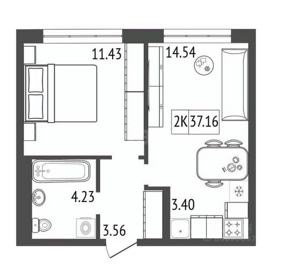 Общая площадь37,16 м²