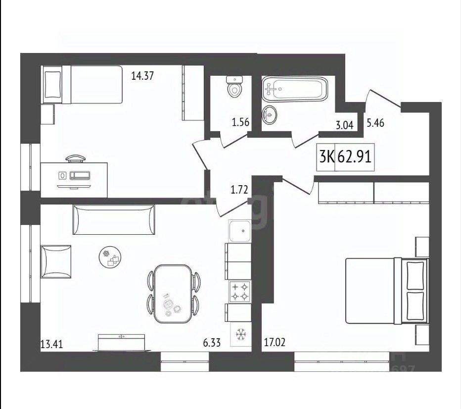 Продаётся 3-комнатная квартира в строящемся доме (Премьер парк), срок сдачи: III-кв. 2029, общей площадью 62.91 кв.м., на 11 этаже. Жилой комплекс "Премьер Парк" расположен в живописном микрорайоне Тихие Зори города Красноярска, неподалеку от реки Енисей и знаменитого железнодорожного моста, удостоенного гран-при наравне с Эйфелевой башней. Вблизи комплекса находятся такие достопримечательности, как фан-парк "Бобровый Лог", заповедник "Столбы" и река Базаиха с её живописной поймой. Чтобы провести время на природе понадобиться потратить всего несколько минут на дорогу.