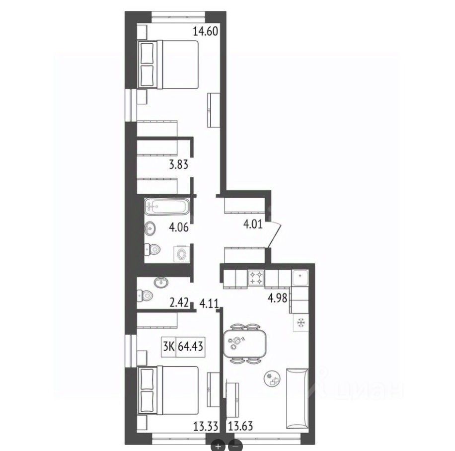 Продаётся 3-комнатная квартира в строящемся доме (Премьер парк), срок сдачи: III-кв. 2029, общей площадью 64.97 кв.м., на 8 этаже. Жилой комплекс "Премьер Парк" расположен в живописном микрорайоне Тихие Зори города Красноярска, неподалеку от реки Енисей и знаменитого железнодорожного моста, удостоенного гран-при наравне с Эйфелевой башней. Вблизи комплекса находятся такие достопримечательности, как фан-парк "Бобровый Лог", заповедник "Столбы" и река Базаиха с её живописной поймой. Чтобы провести время на природе понадобиться потратить всего несколько минут на дорогу.