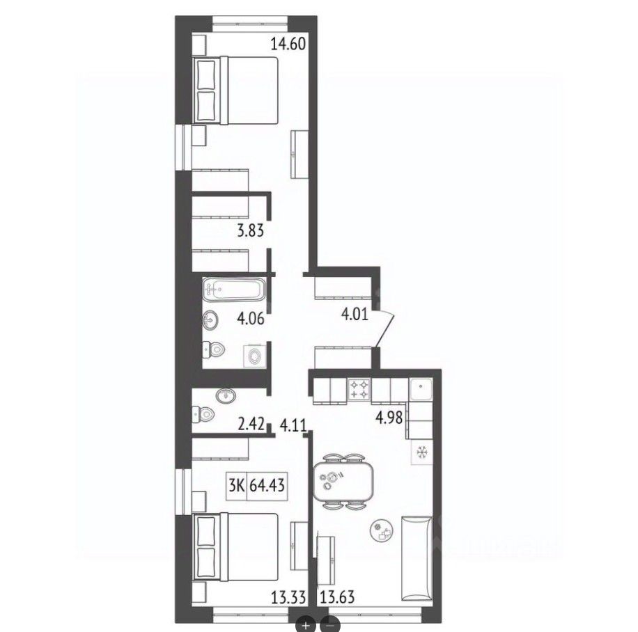 Продаётся 3-комнатная квартира в строящемся доме (Премьер парк), срок сдачи: III-кв. 2029, общей площадью 64.97 кв.м., на 13 этаже. Жилой комплекс "Премьер Парк" расположен в живописном микрорайоне Тихие Зори города Красноярска, неподалеку от реки Енисей и знаменитого железнодорожного моста, удостоенного гран-при наравне с Эйфелевой башней. Вблизи комплекса находятся такие достопримечательности, как фан-парк "Бобровый Лог", заповедник "Столбы" и река Базаиха с её живописной поймой. Чтобы провести время на природе понадобиться потратить всего несколько минут на дорогу.