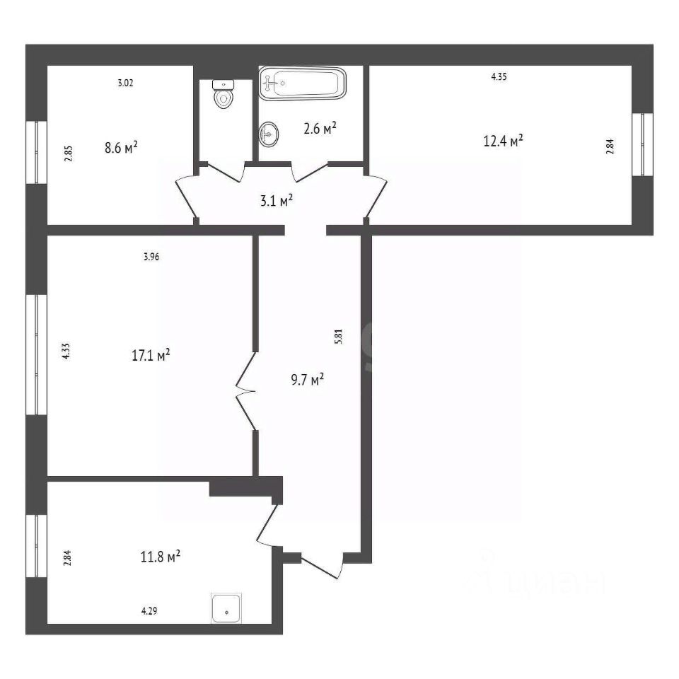 Планировка: Три полноценные раздельные комнаты, что обеспечивает приватность и комфорт для всех членов семьи.