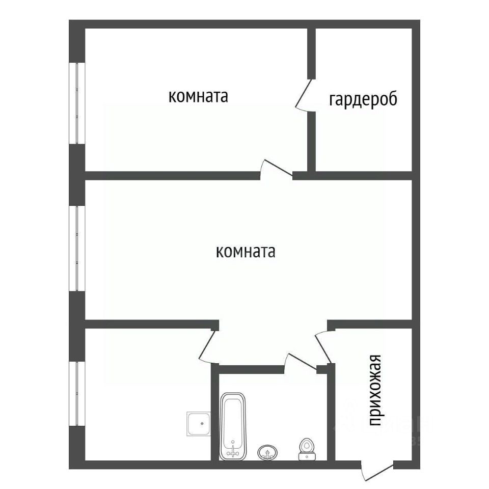* Совмещенный санузел: 4 кв.м.
