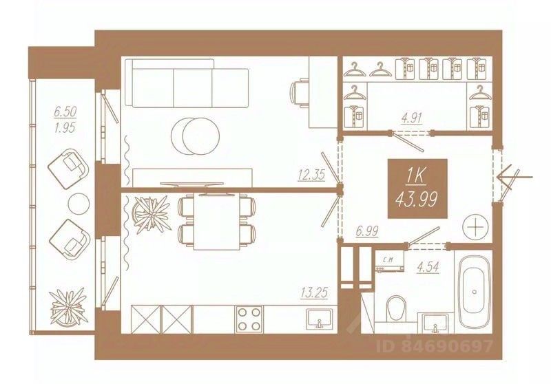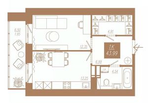 43,99 м²