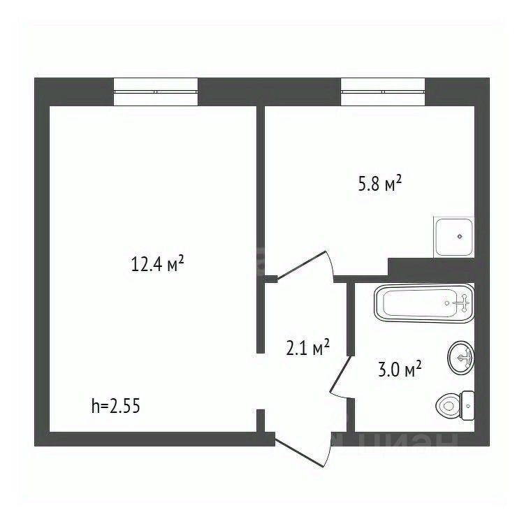 -комната 12,4 кв.м.