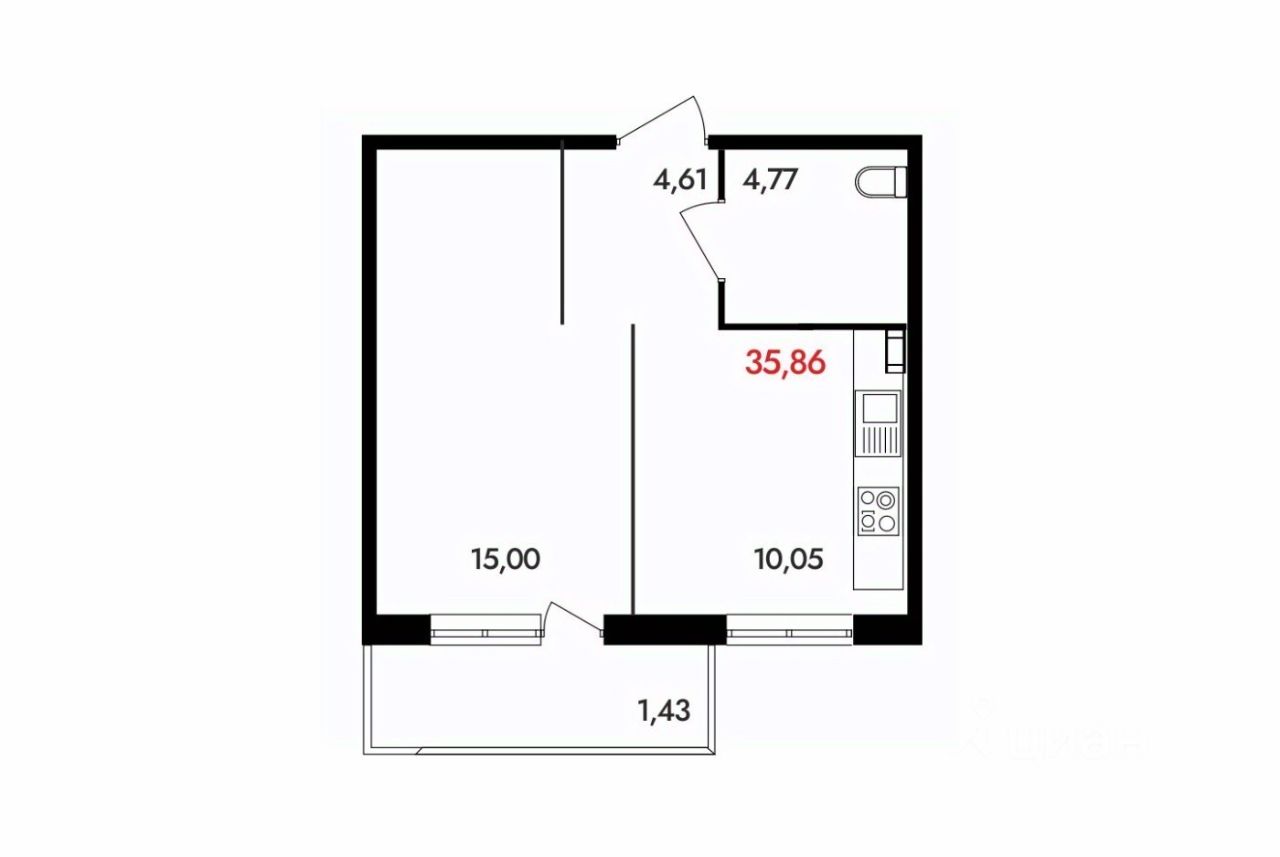Общая площадь35,84 м²