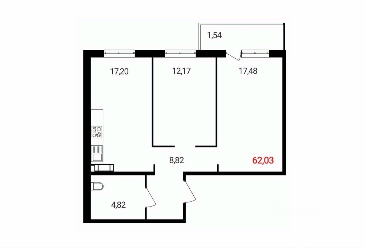 Общая площадь62,03 м²