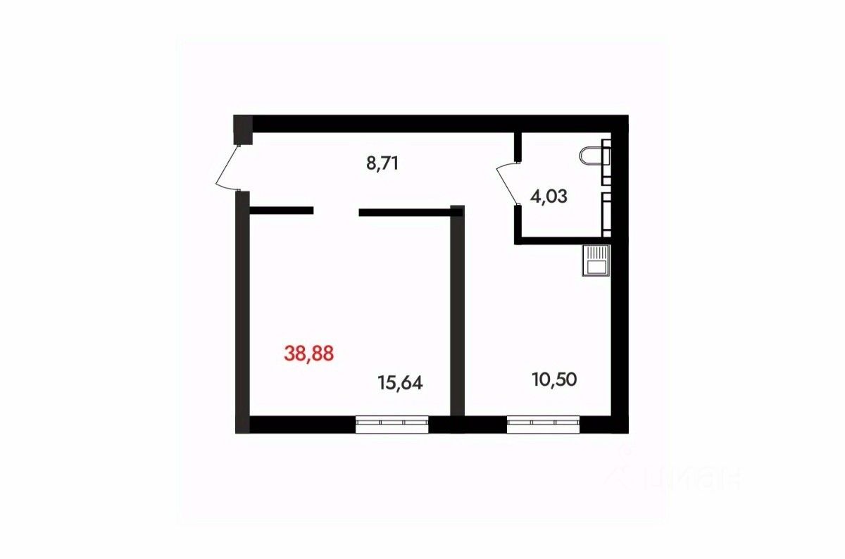 Общая площадь38,88 м²