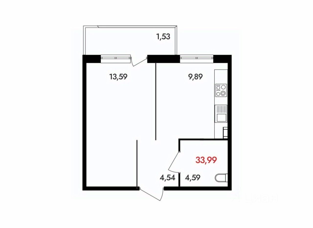 Общая площадь33,99 м²