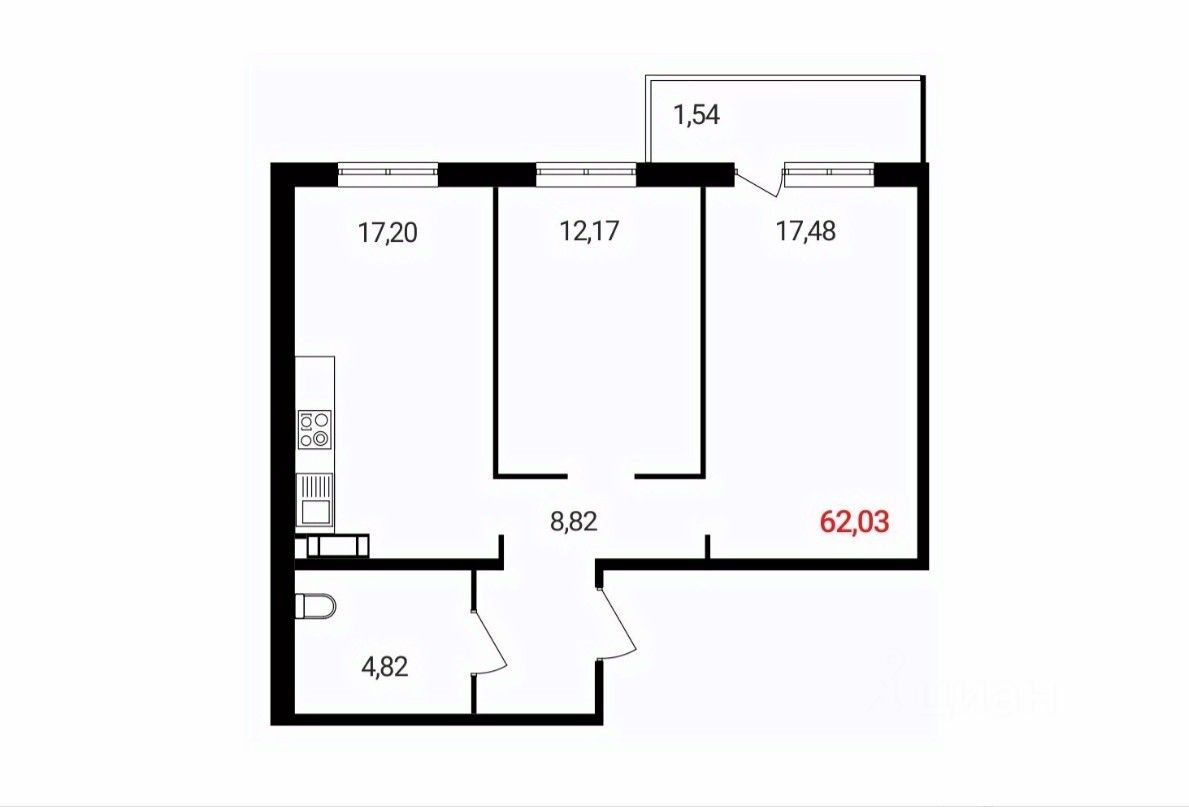 Общая площадь62,03 м²