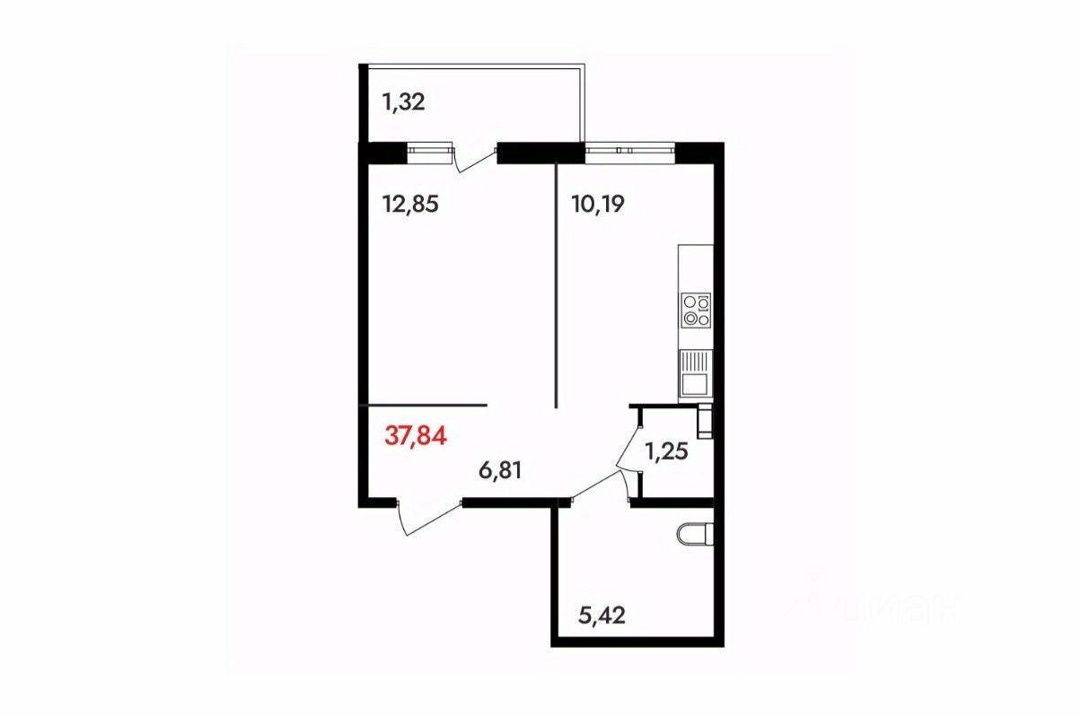 Общая площадь37,84 м²