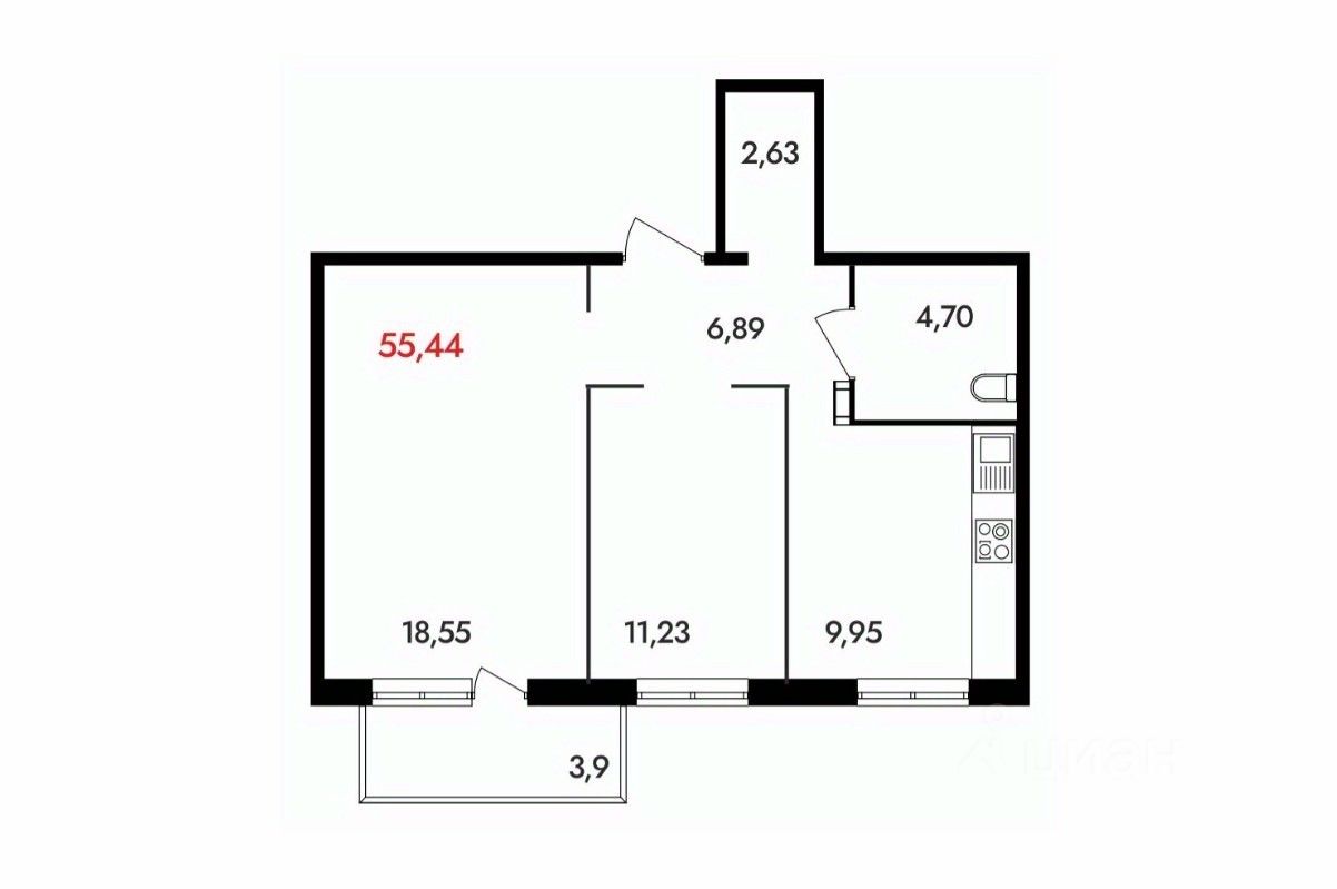 Общая площадь55,5 м²